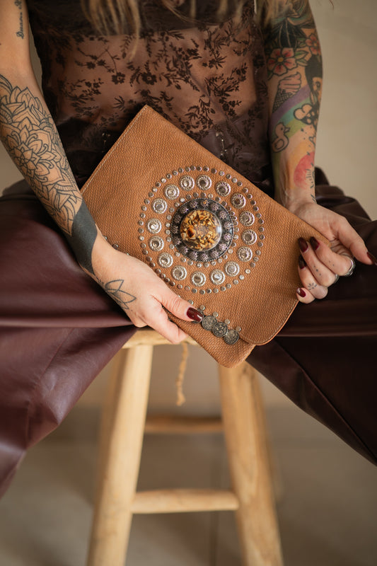 אזל המלאיתיק קלאצ׳ חום עם אבן