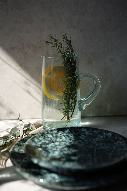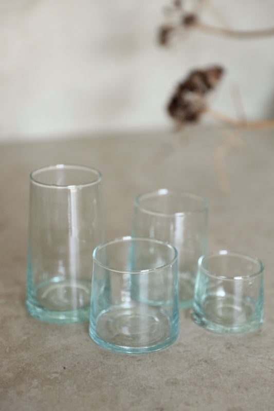 מגוון כלי זכוכית בעיצוב מוקפד, שמוסיפים אור ואלגנטיות לשולחן ולמטבח.