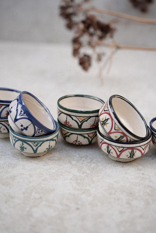 כלי הבית שלנו הם לא סתם כלים - הם יצירות אמנות. קערות בעבודת יד, צלחות צבעוניות וטאג׳ינים משובצים, שכל אחד מהם נושא את הרוח המרוקאית.