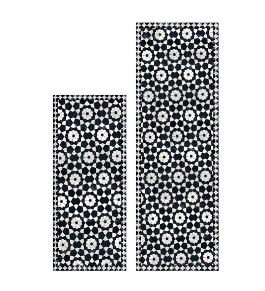 שולחן מוזאיקה מלבני | משבצות שחור לבן