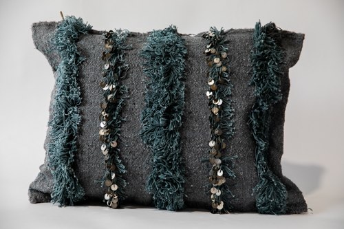 כרית עם פייטים אפורה