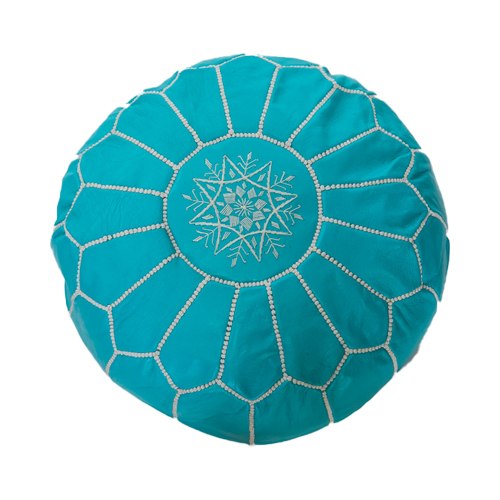 פוף עור טורקיז+לבן