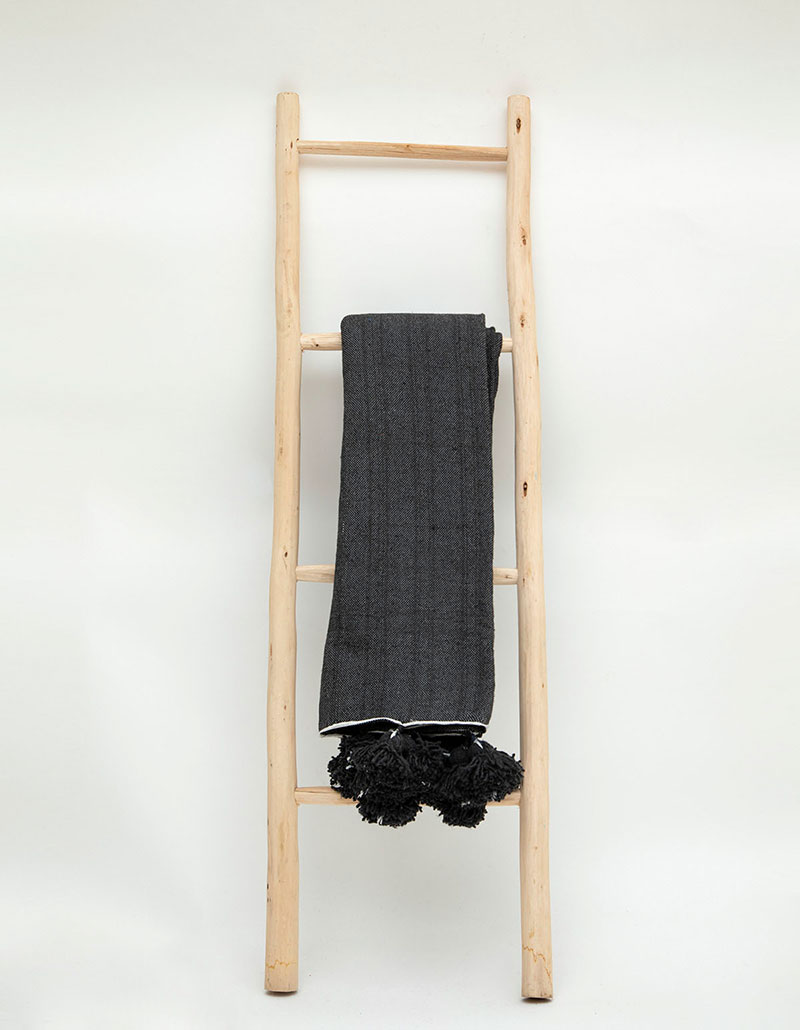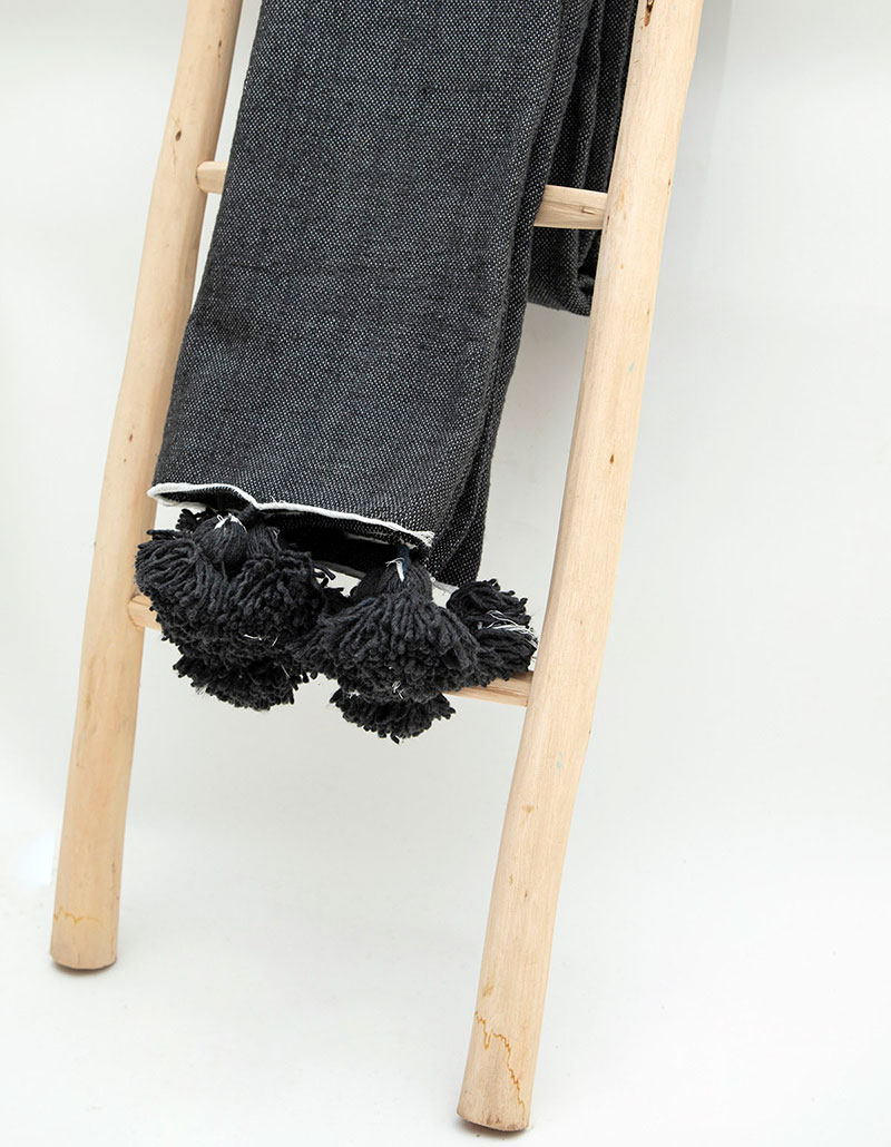 שמיכת פונפונים אפור כהה L