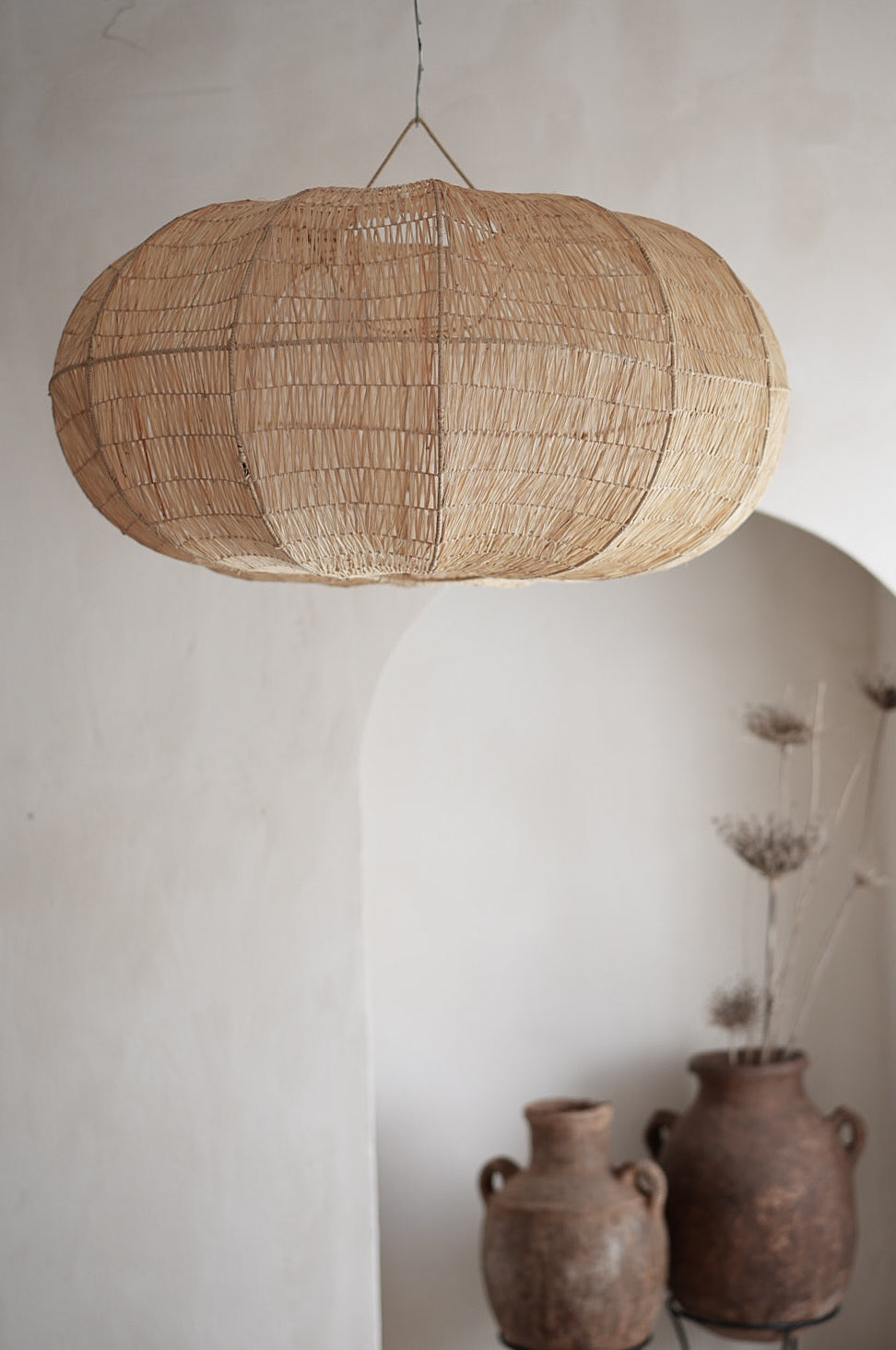 .עשוי רפיה סרוגה טבעית ונעימה, לאווירה חמימה ומראה טבעי