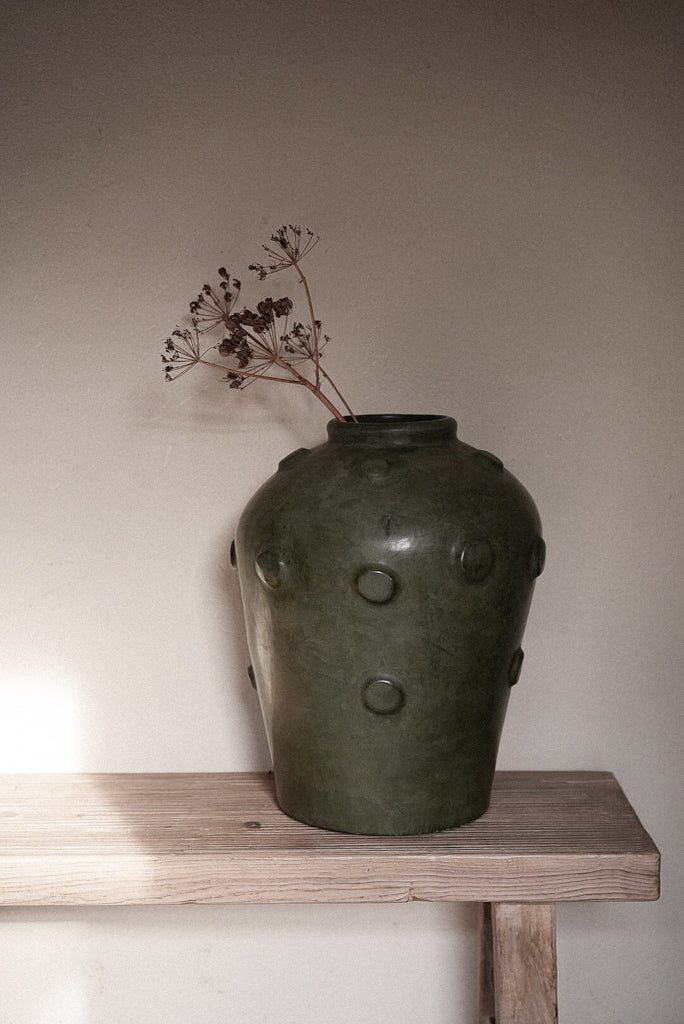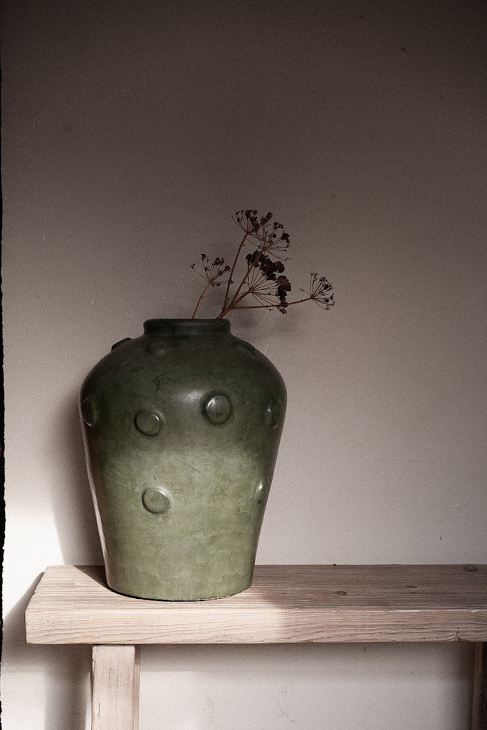 כד דקורטיבי עשוי חרס טבעי צבוע ירוק