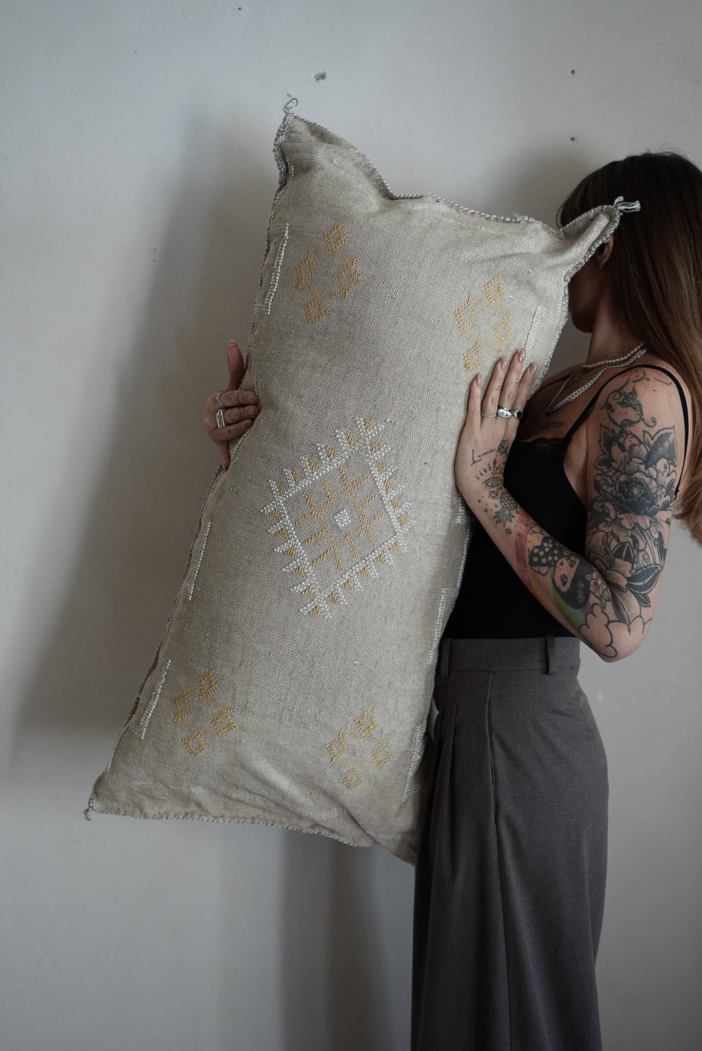 כרית סברה מרוקאית עשויה חוטי משי קקטוס