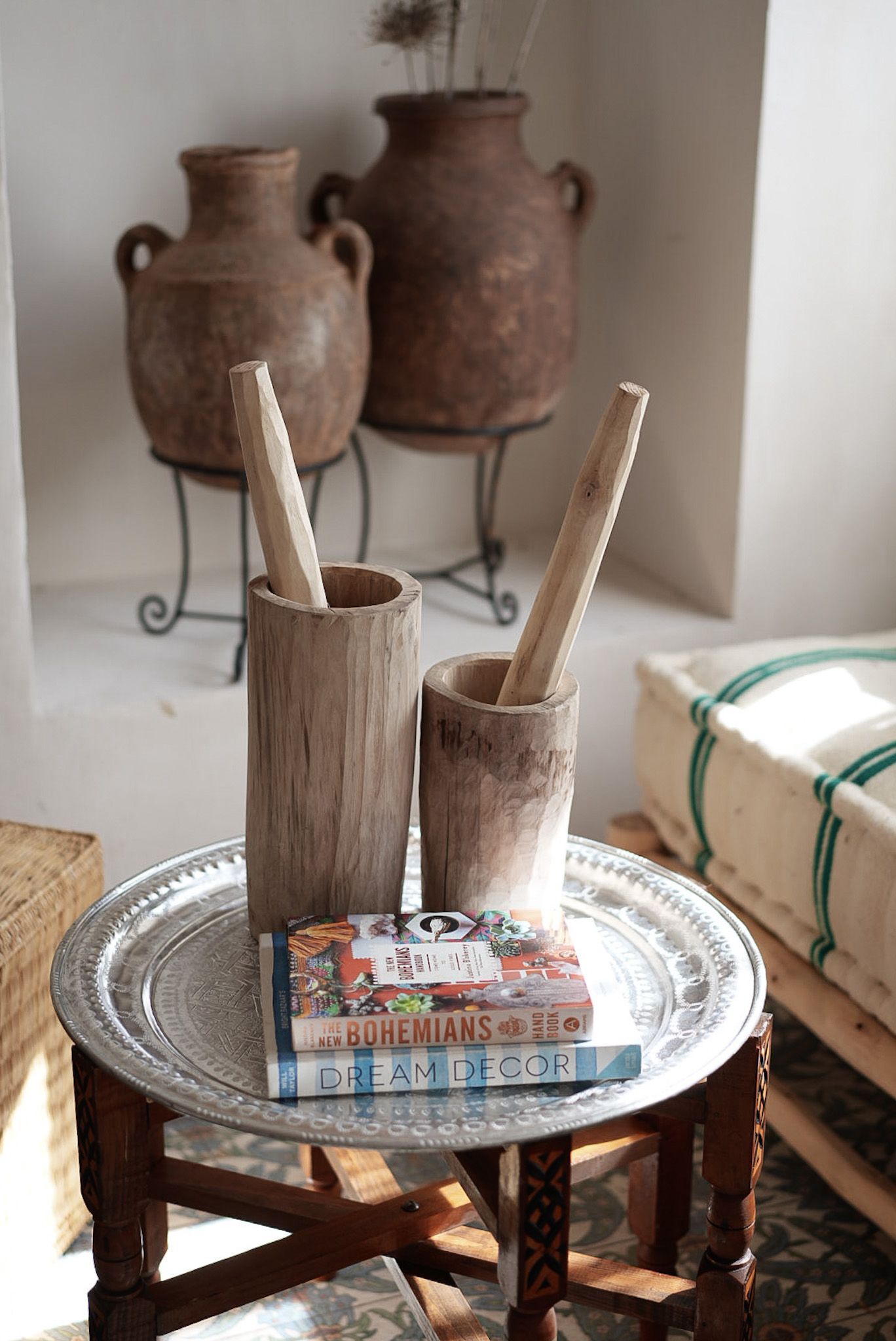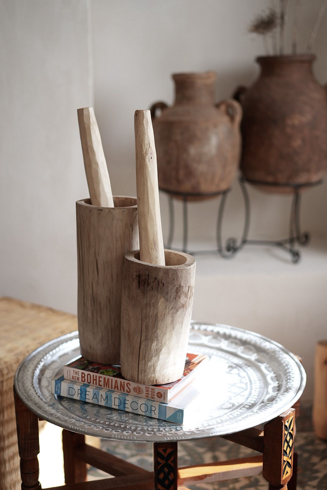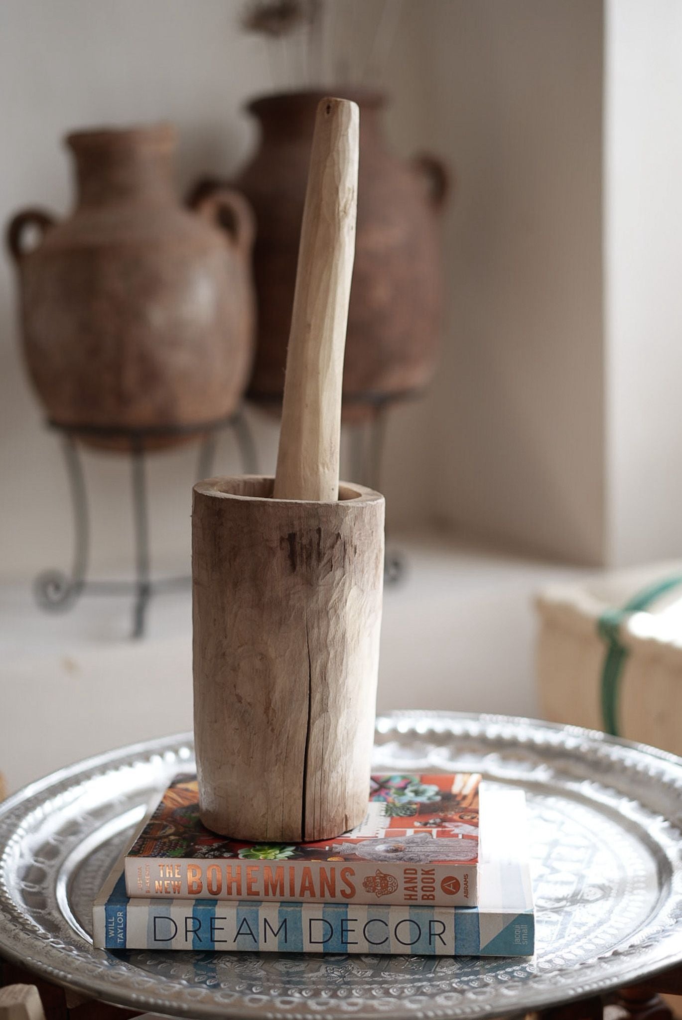 מכתש ועלי עשוי עץ טבעי בעבודת יד.