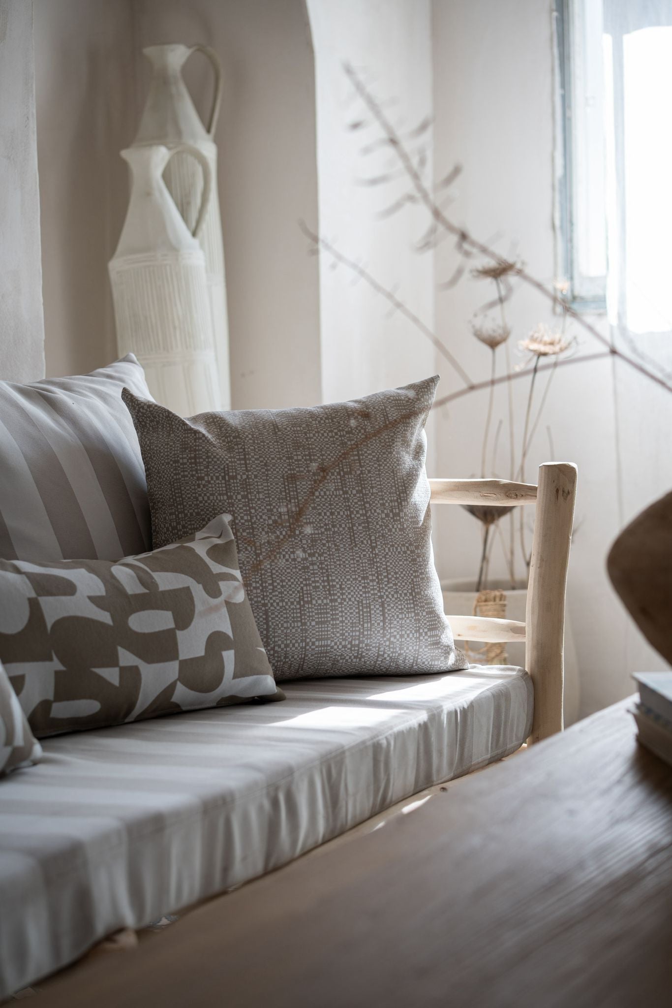ספה מעץ טבעי | בז'